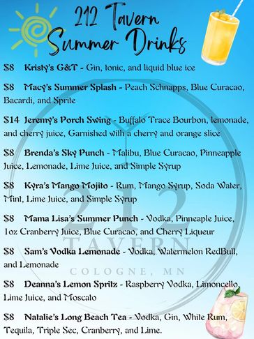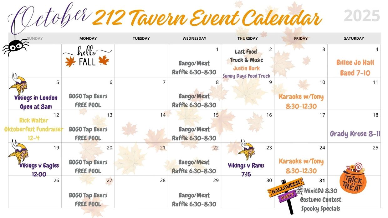 Check out our calendar or facebook for information on events at 212 Tavern.
