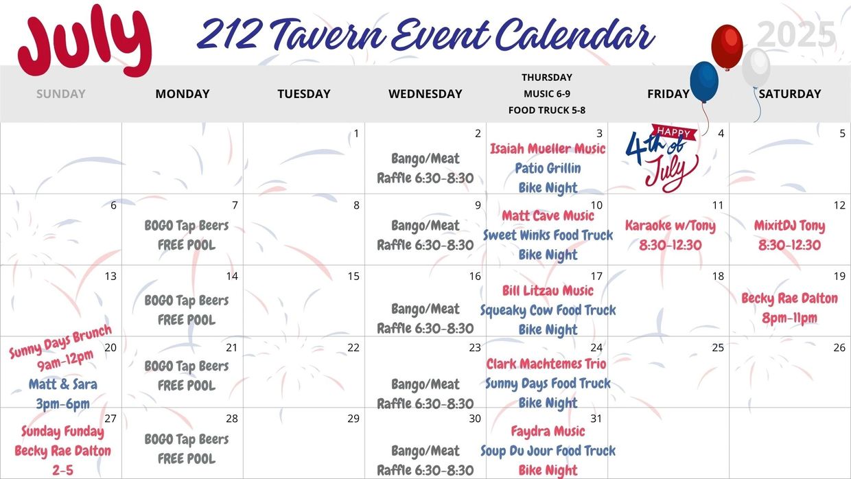 Check out our calendar or facebook for information on events at 212 Tavern.